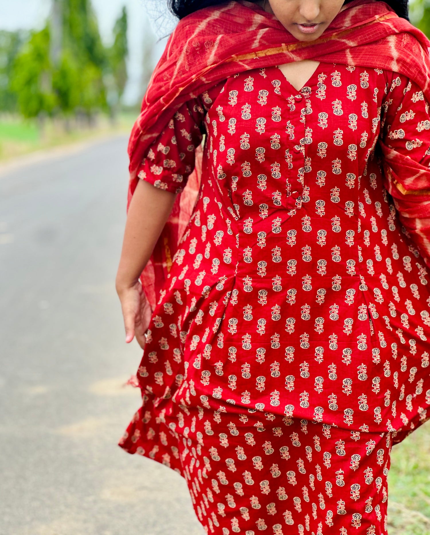 Step into the comfort zone with our cotton kurta sets – because who said style can't be as easy as your favorite sitcom? This ensemble is basically a VIP pass to looking good without breaking a sweat. Just throw it on, and you're officially the CEO of laid-back fashion. Casual vibes, serious style.
