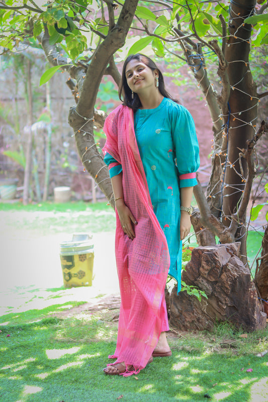 Indulge in opulence with our luxurious cotton sets with organza dupatta. Immerse yourself in the rich texture and exquisite details that redefine elegance. This isn't just clothing; it's a statement, a whisper of sophistication that turns heads. The intricate craftsmanship and lavish feel ensure you radiate luxury at every step