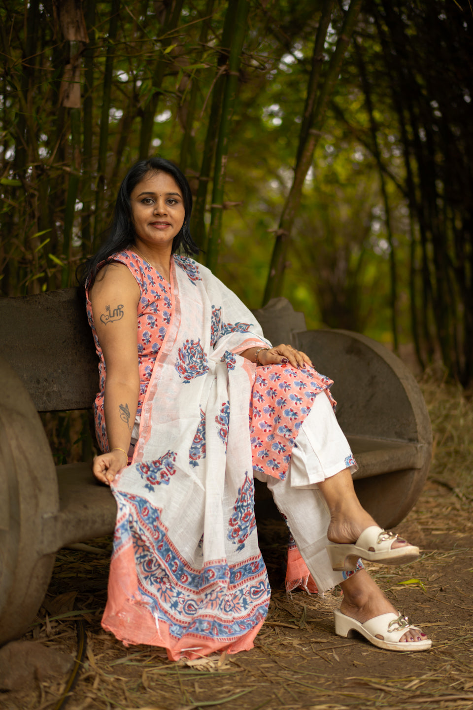 Pink floral pure cotton workwear kurta set (sleeves attached)