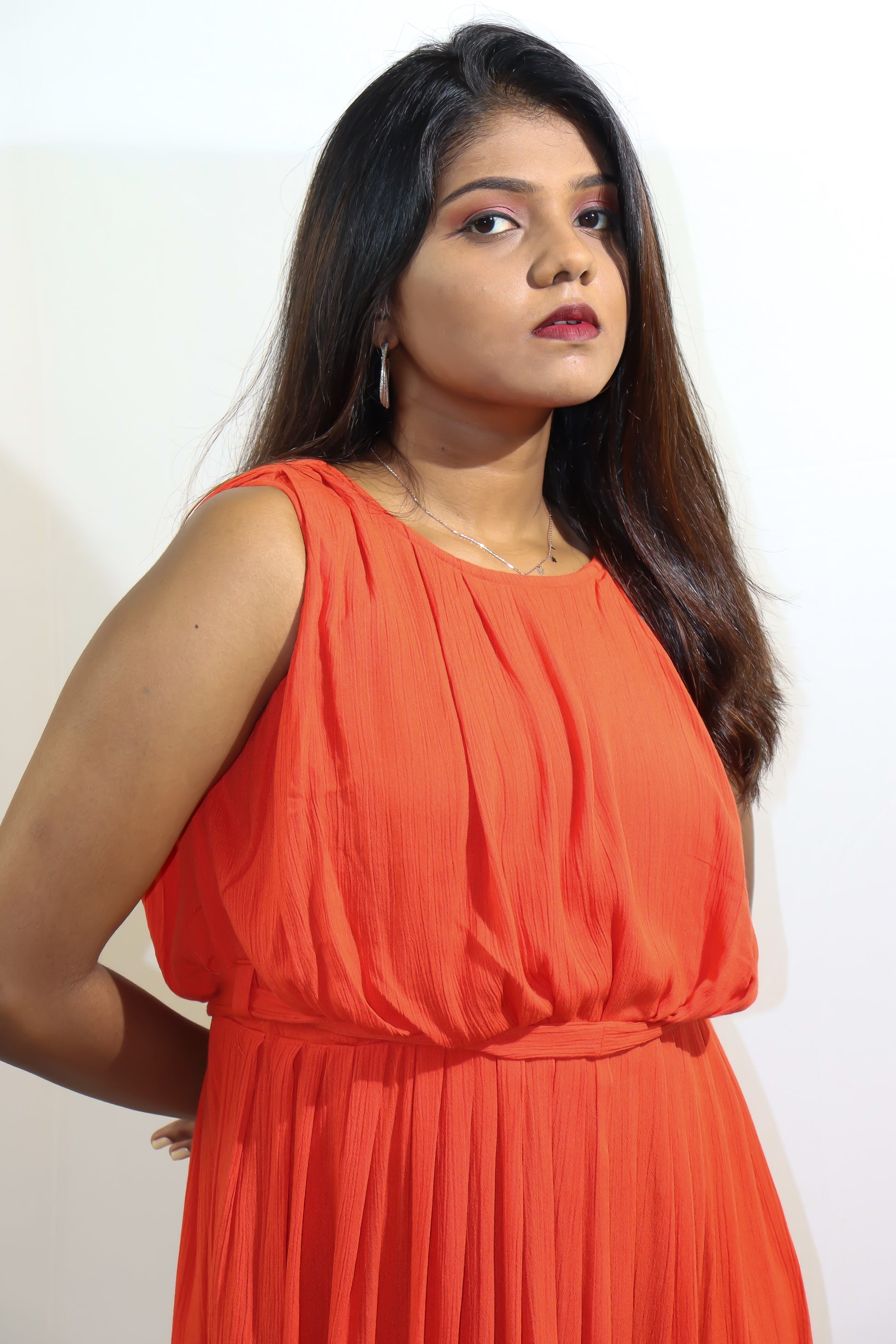 This Coral Orange Cotton Ethnic Maxi dress has an elegant silhouette and features a durable, lightweight cotton fabric with an eye-catching ethnic print. Its stylish design and comfort make it perfect for any special occasion.
