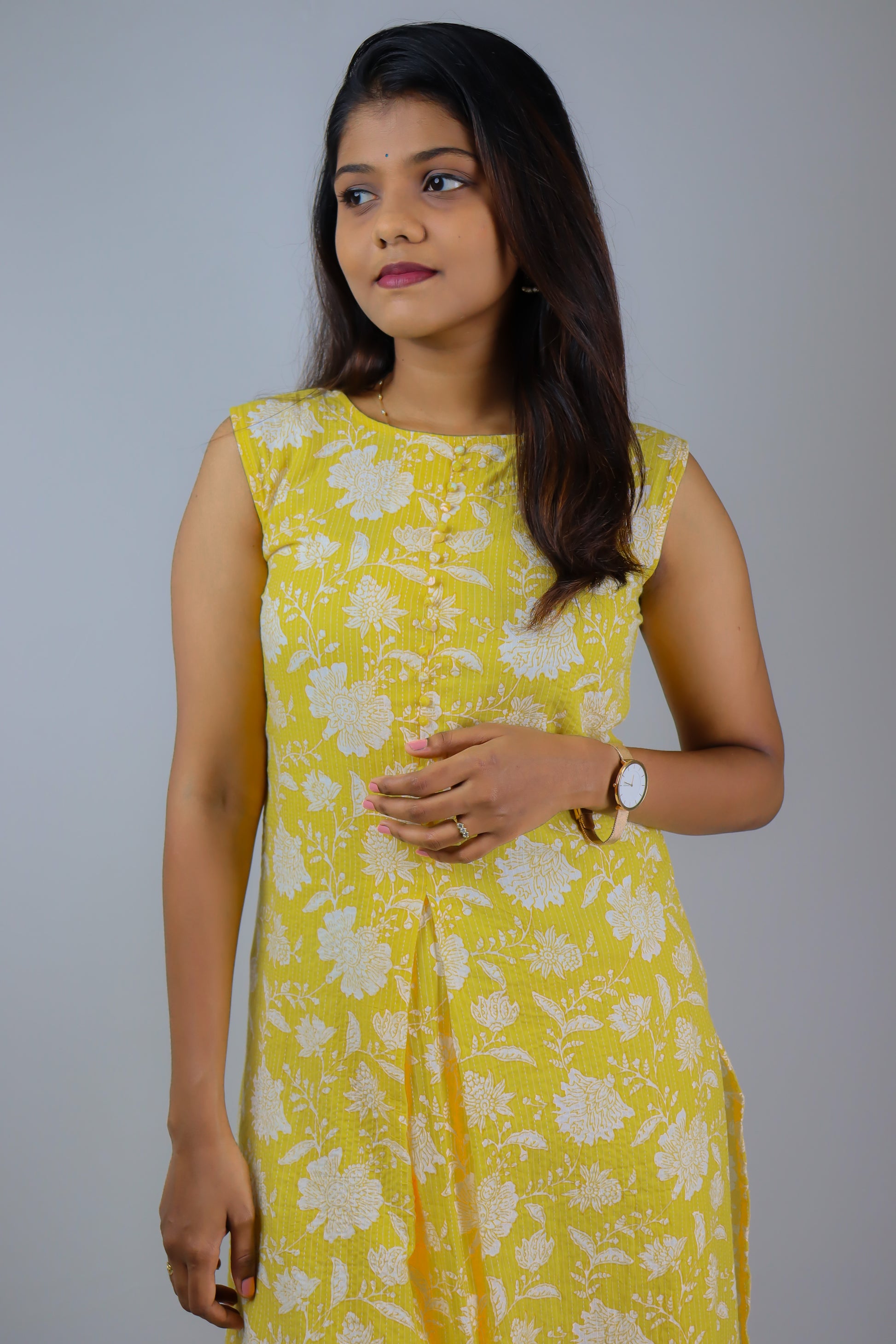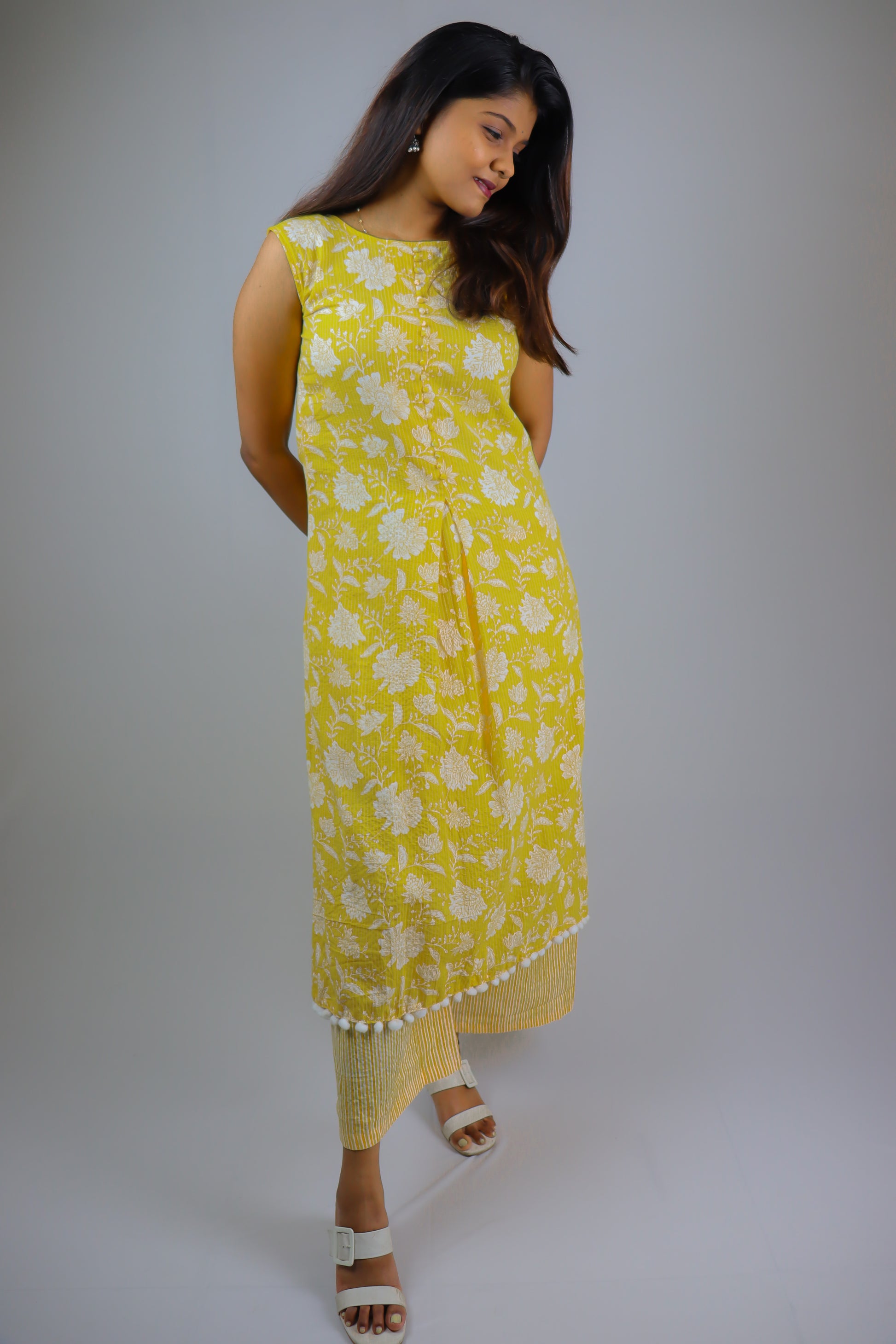 This lemon yellow pure cotton kurta is perfect for any woman seeking comfort and style. Made with high-quality cotton, this kurta offers a soft and breathable feel, while its vibrant lemon yellow color adds a touch of elegance. Embrace comfort and sophistication with this stunning kurta.