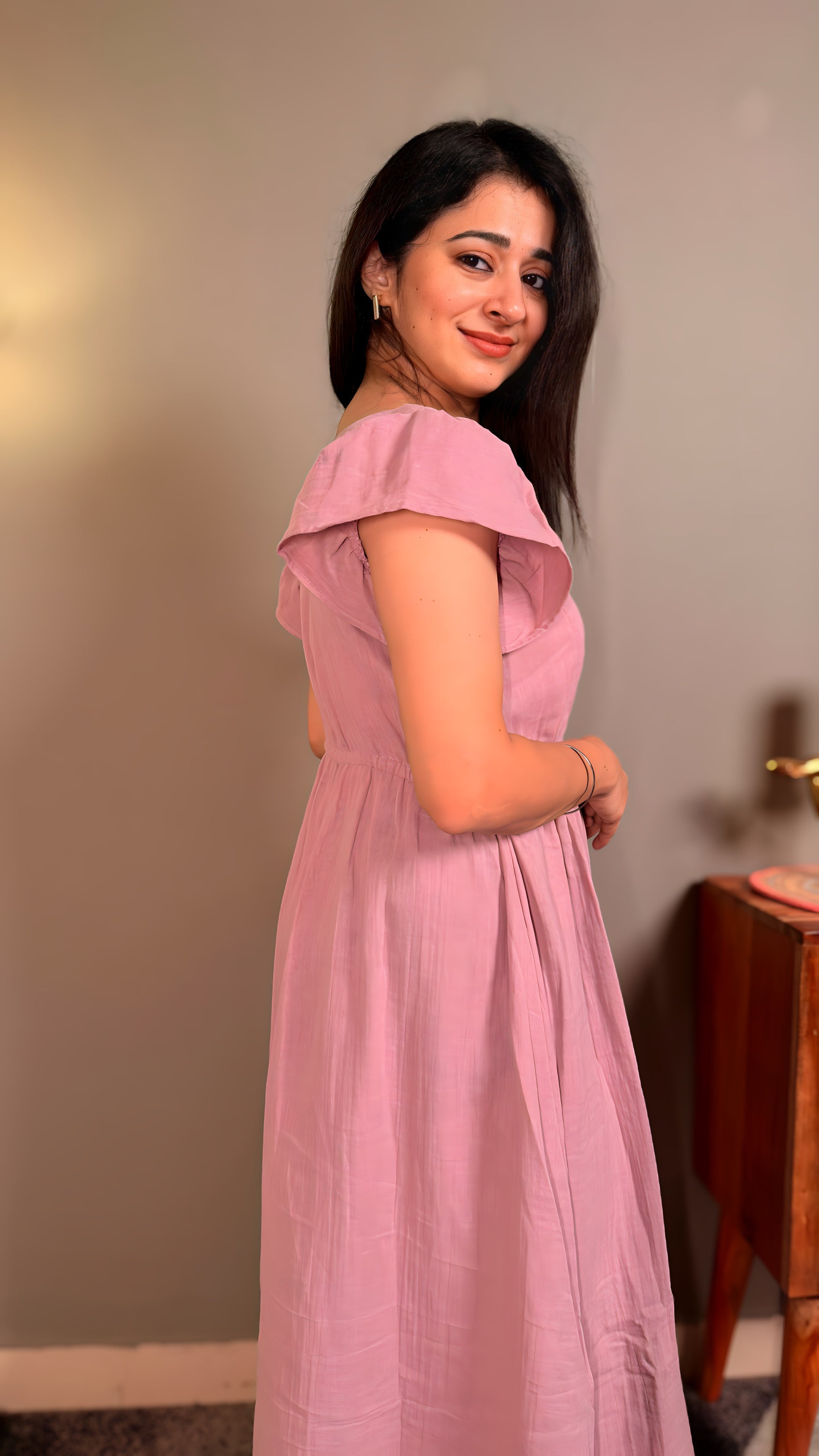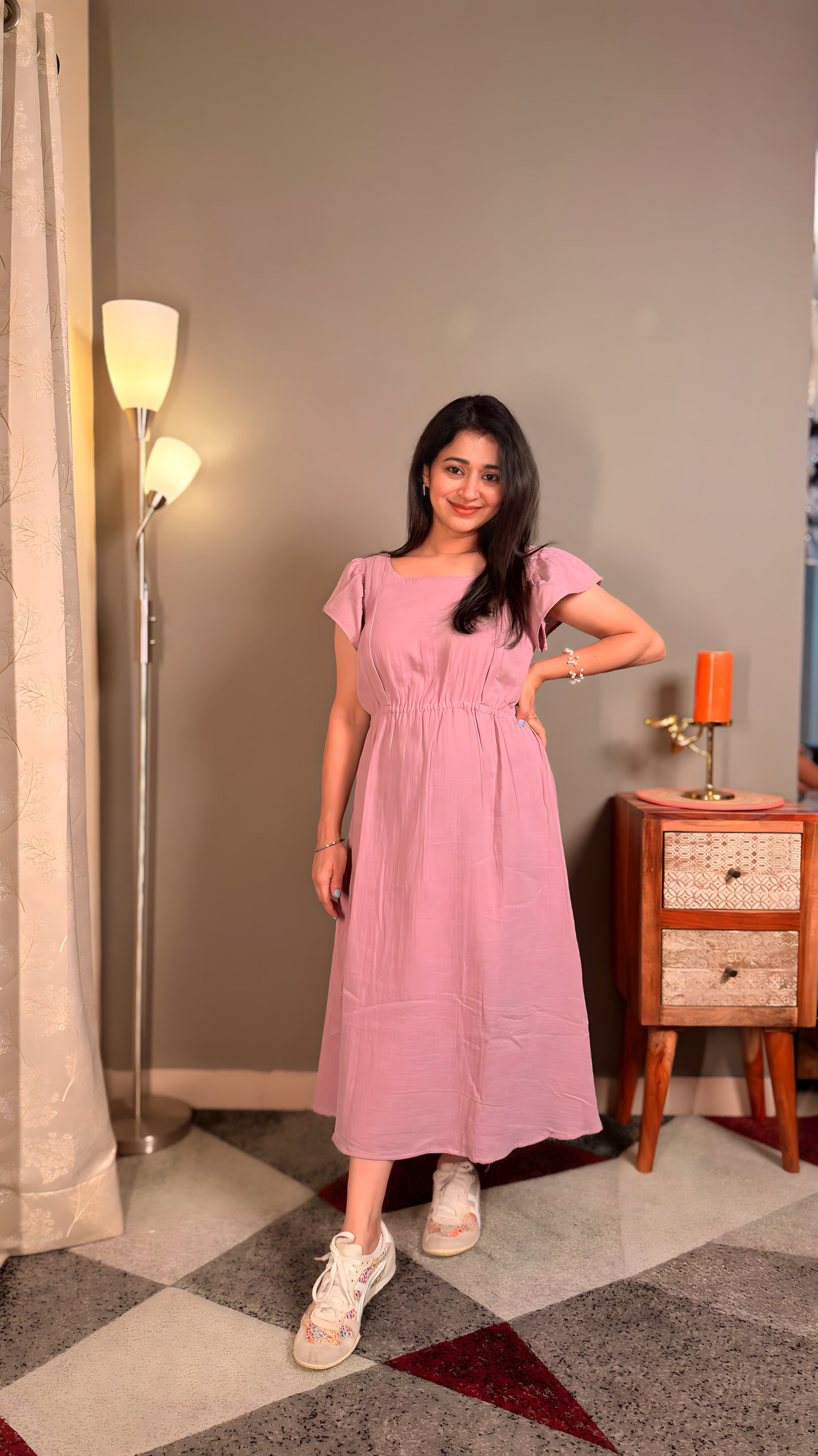 Mauve pure muslin cotton women maternity maxi