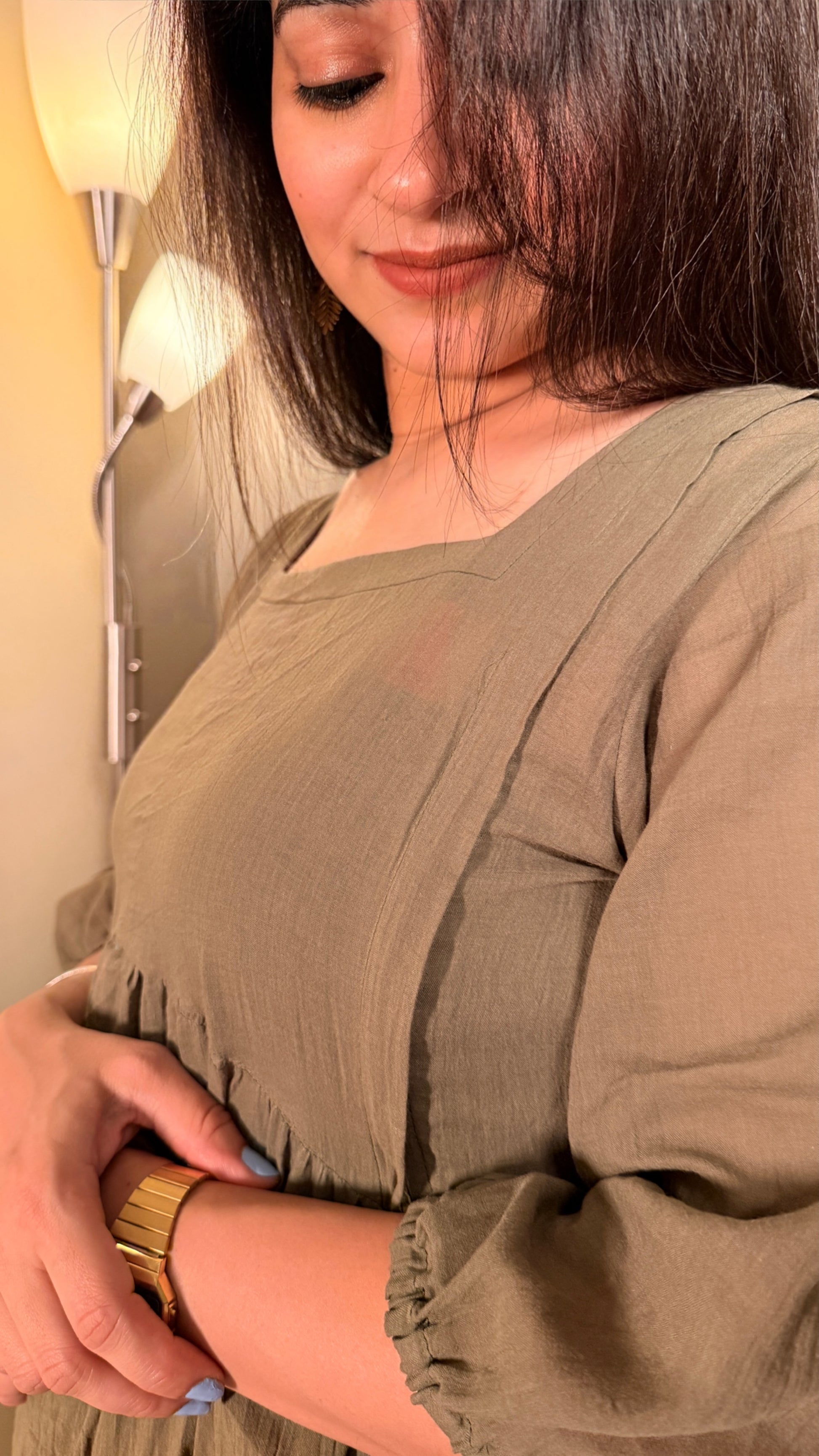 Crafted from 100% pure muslin cotton, this maternity maxi offers exceptional breathability and softness, ideal for sensitive skin during pregnancy. Its lightweight fabric ensures comfort throughout the day, while the relaxed fit accommodates a growing belly without restricting movement. Designed with care, this maxi supports natural airflow and reduces irritation, making it a practical and stylish choice for expectant mothers seeking gentle, breathable clothing.