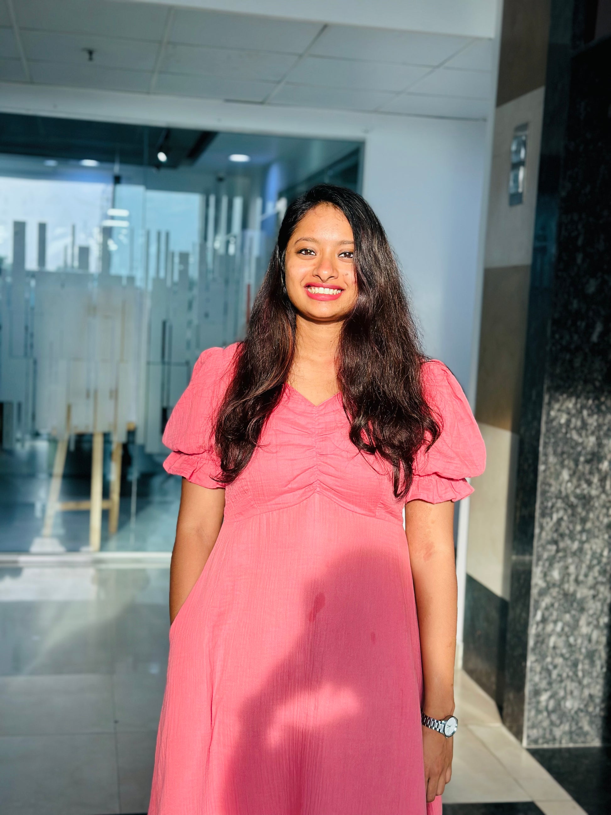 Peachy pink A-Line cotton muslin maxi