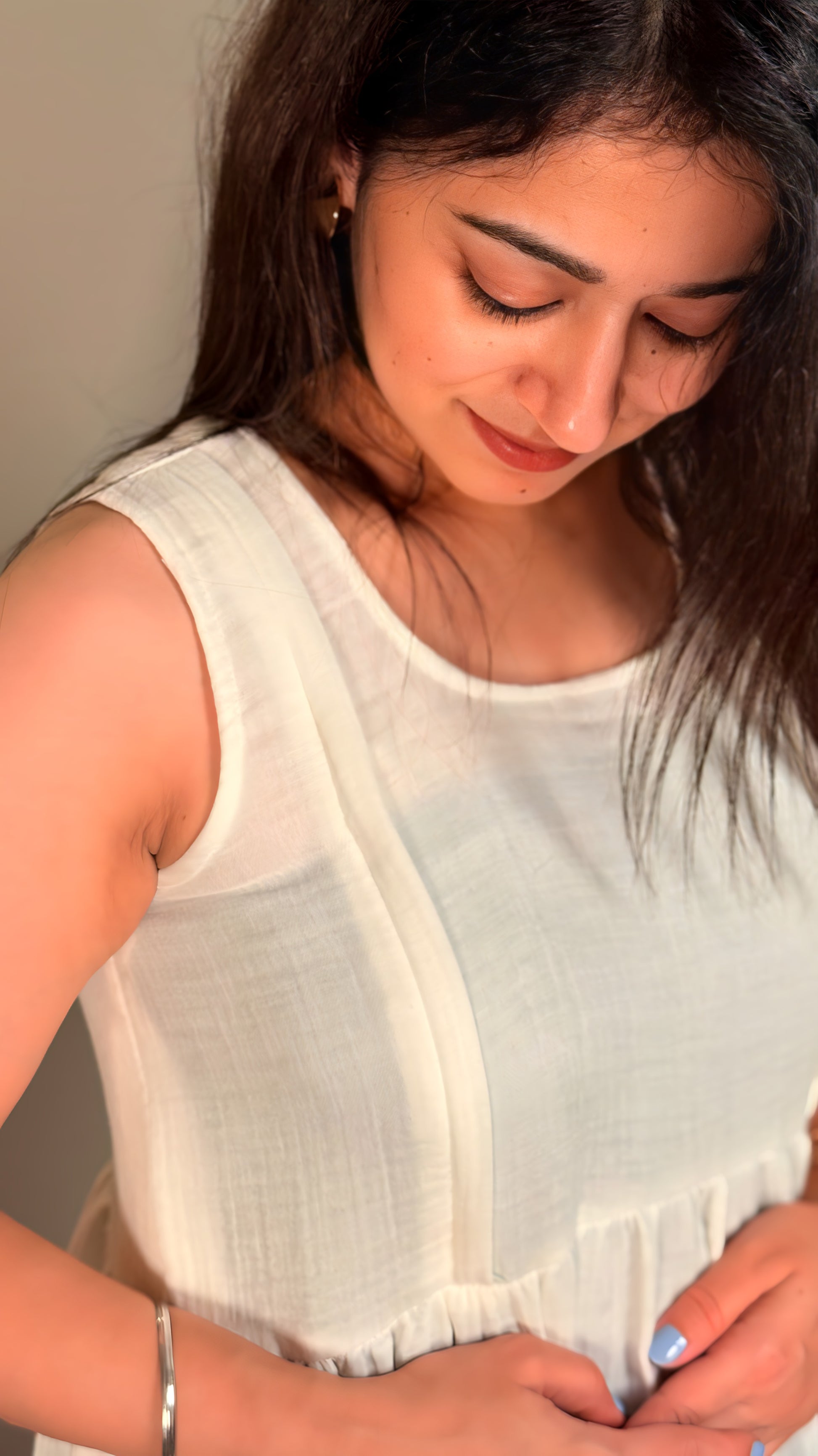 Crafted from pure muslin cotton, this white maternity maxi offers breathable comfort and gentle softness ideal for sensitive skin during pregnancy. Its long, attached sleeves provide modest coverage while allowing easy movement, making it perfect for all-day wear. The lightweight fabric ensures natural airflow, helping to regulate temperature and reduce irritation. Designed with maternity needs in mind, this maxi combines practical comfort with elegant simplicity for expecting mothers seeking both style and ease.